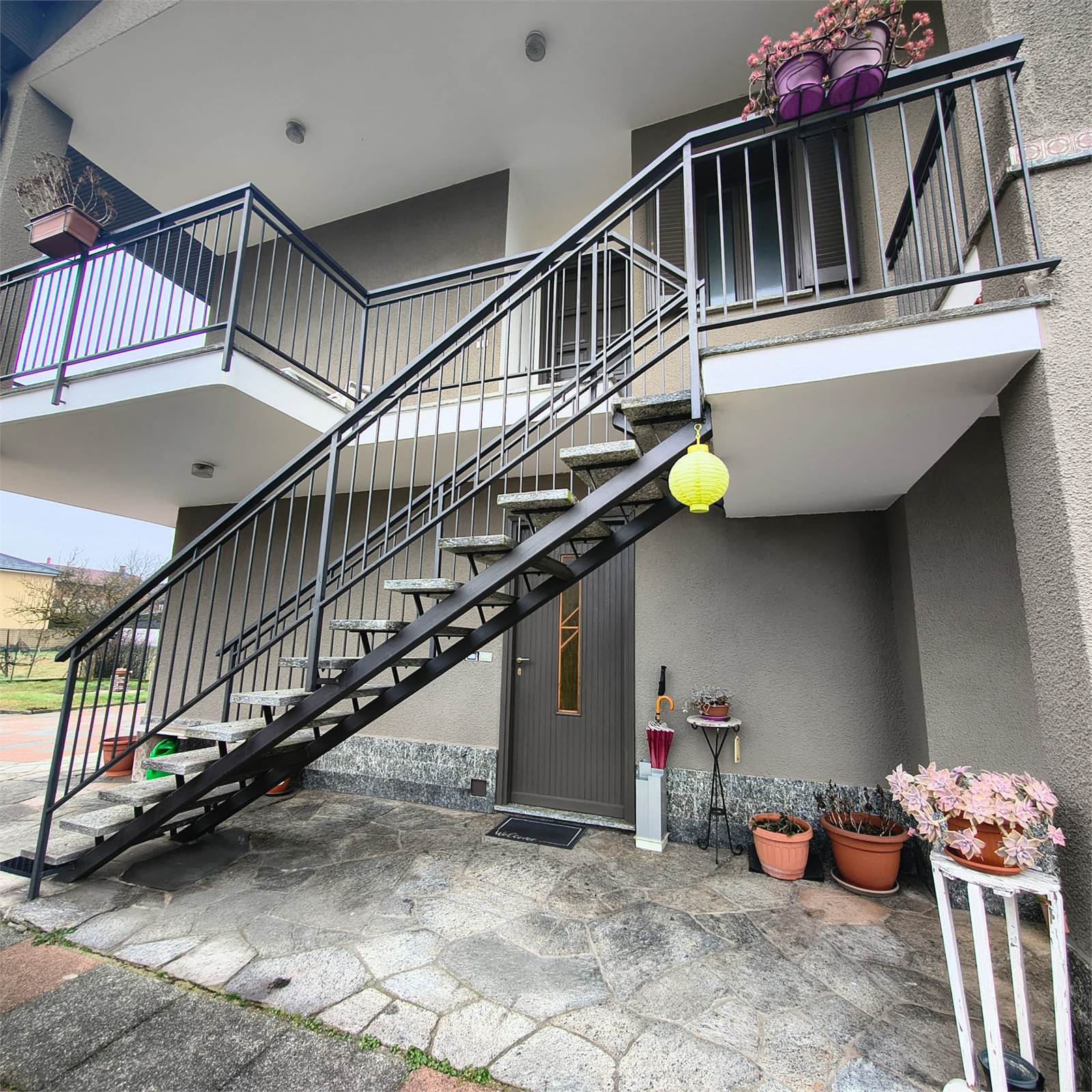 L’accesso al piano superiore avviene sia tramite scala interna a chiocciola sia tramite comoda scala esterna.