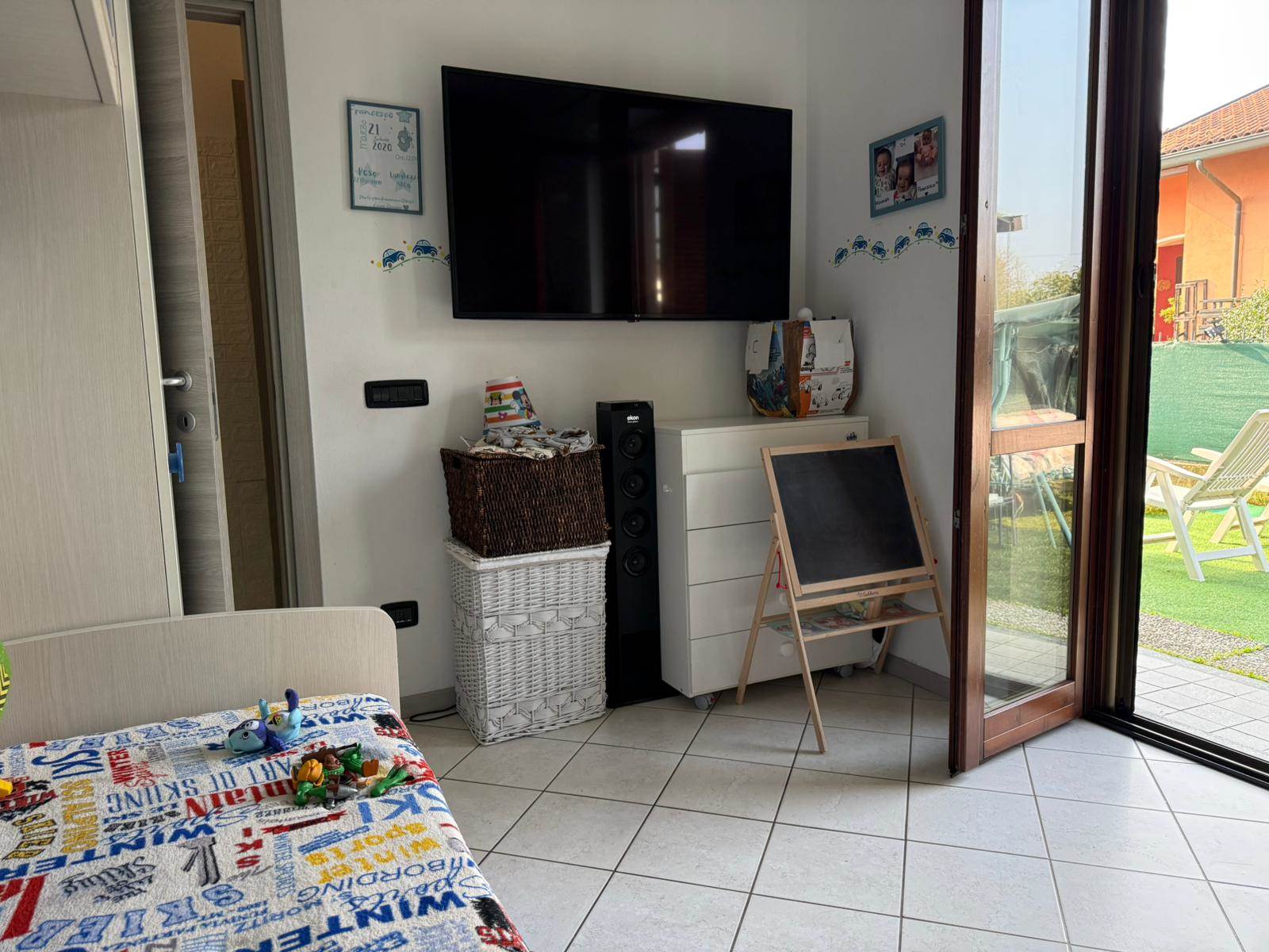 Tutti i locali affacciano su un giardino privato di circa 70 mq, oggi rifinito con prato sintetico per praticità familiare, ma completamente sfruttabile come spazio esterno vivibile.
