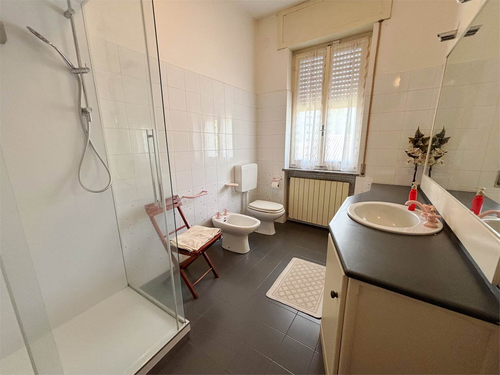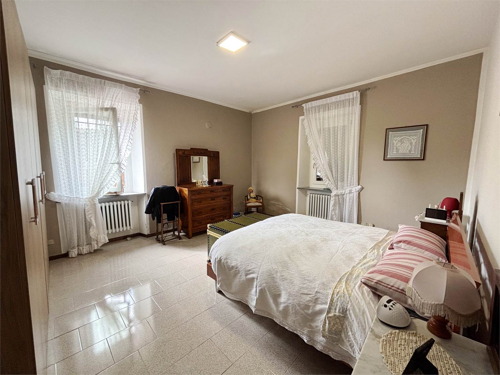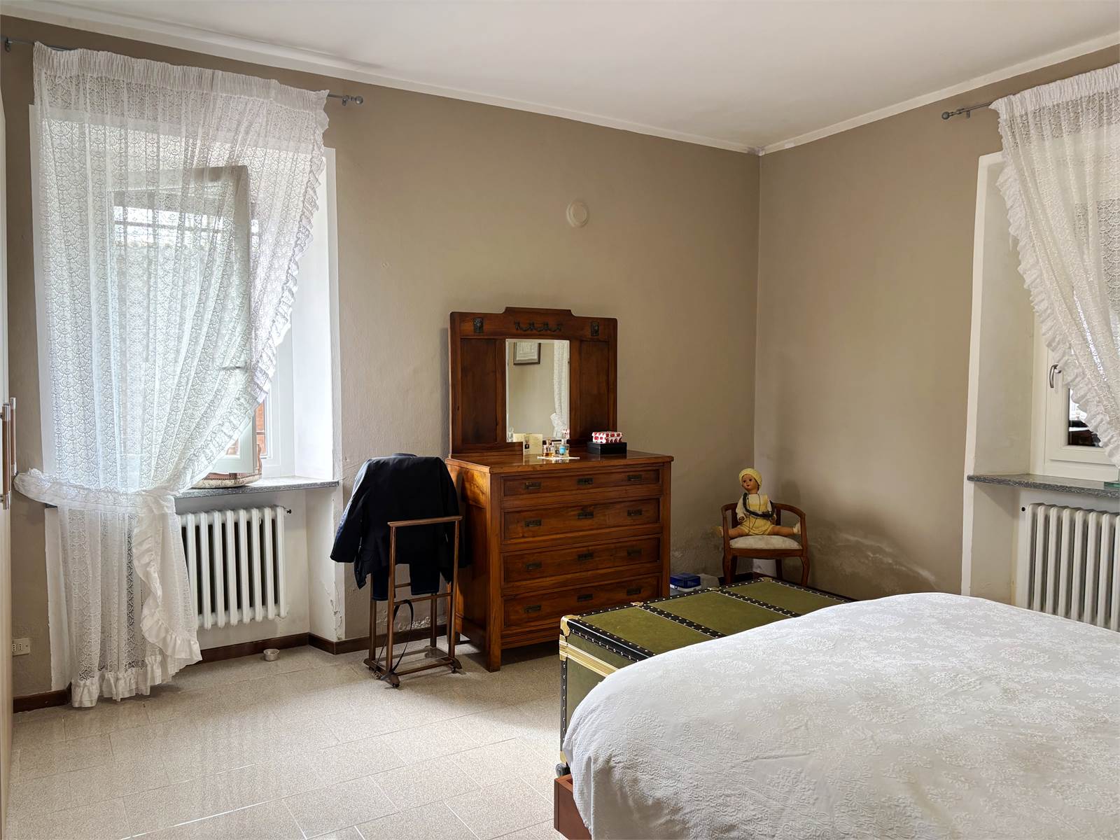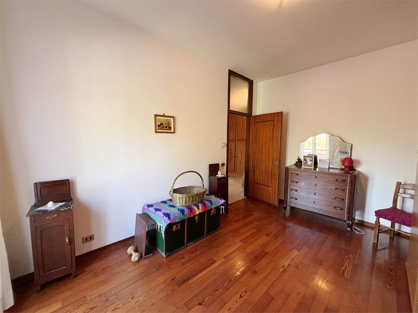 Attraverso un vano scala finestrato si accede al primo piano, dove si sviluppa il secondo appartamento di circa 130 mq. L’ingresso conduce a un ampio soggiorno con camino ventilato e canalizzato fino alla camera matrimoniale, cucina abitabile anch’essa dotata di camino, entrambi con uscita su balcone. La zona notte offre due camere matrimoniali con pavimento in parquet, una cameretta e doppi servizi, oltre a un pratico ripostiglio/locale caldaia. Questo appartamento dispone di serramenti in PVC e caldaia a condensazione del 2016.