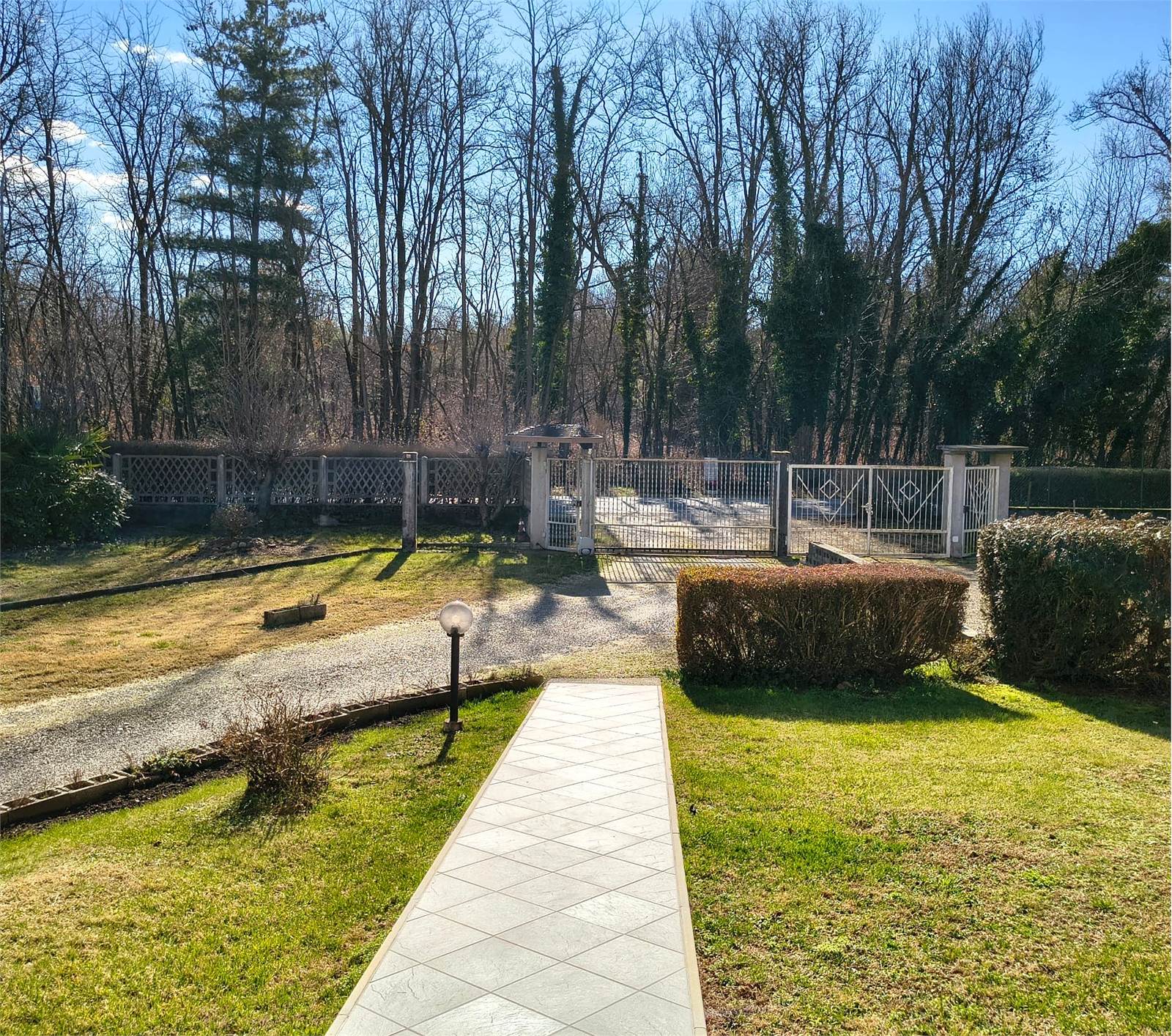 Dotato di: Cancello carraio elettrico, due porte blindate (ingresso appartamento e accesso al piano interrato), tenda da sole, Impianto di videosorveglianza dedicato