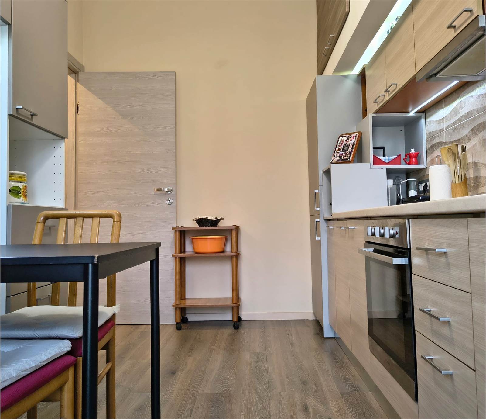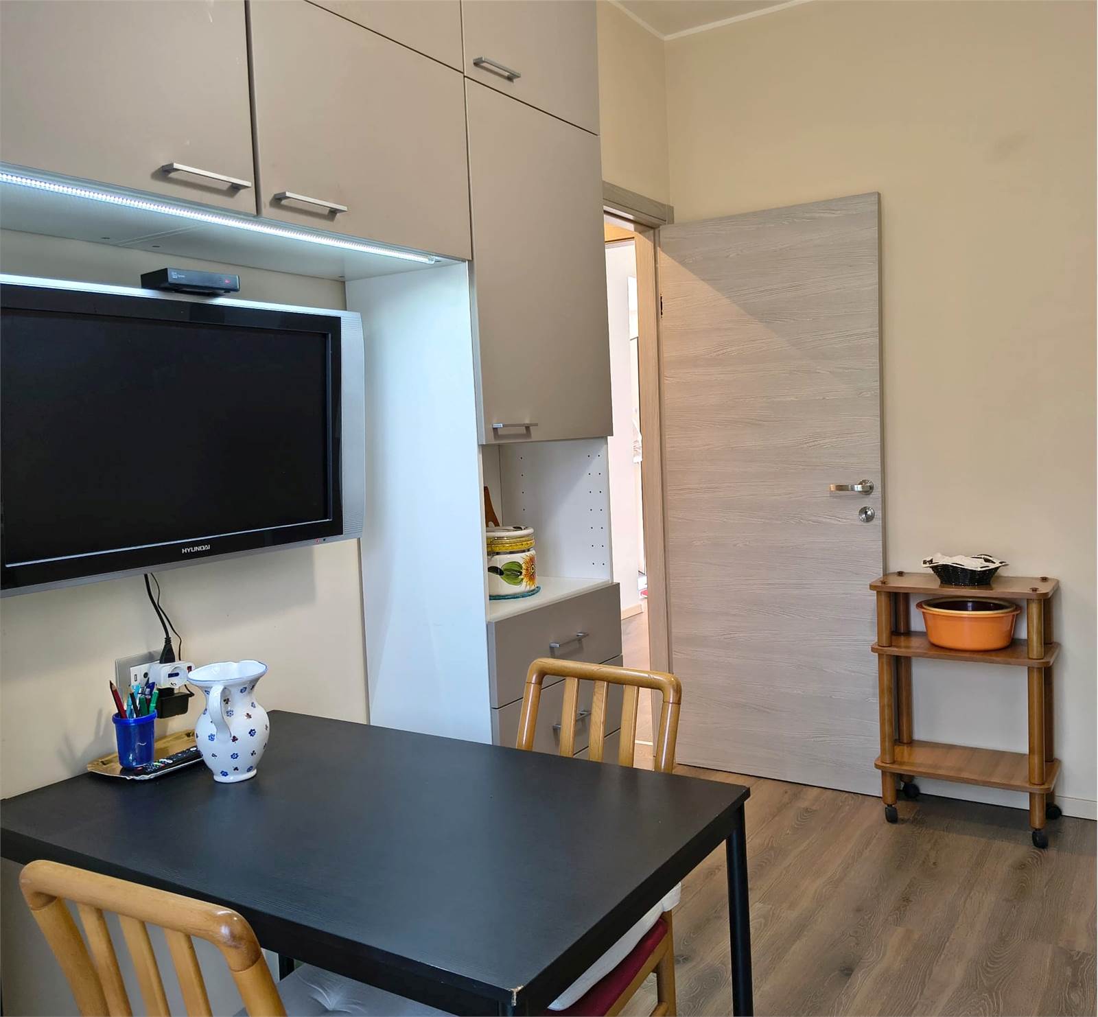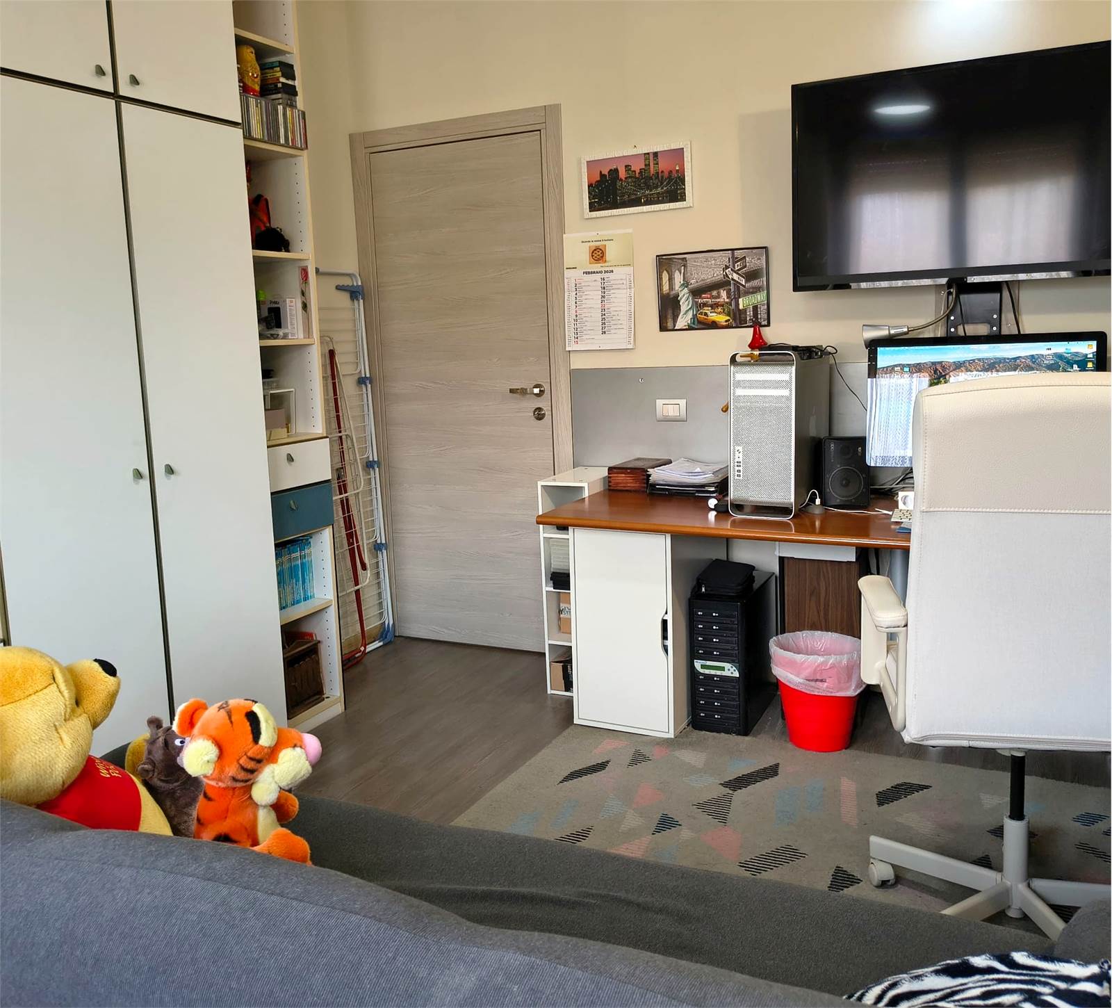 L’immobile si presenta in ottime condizioni ed è caratterizzato da ambienti ampi e luminosi. L’ ingresso si apre su un soggiorno esposto a sud con portico coperto. Adiacente troviamo un ampio studio (utilizzabile anche come cameretta). La cucina è abitabile con accesso al balcone.