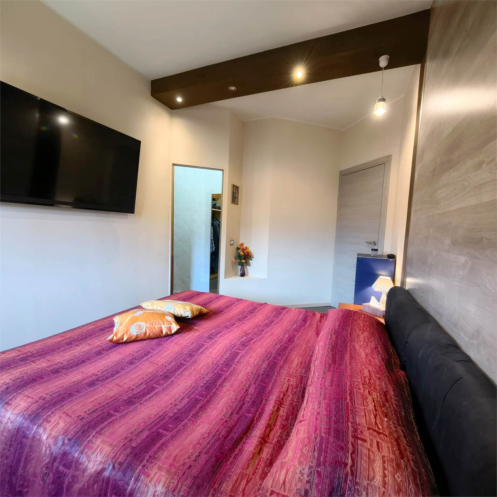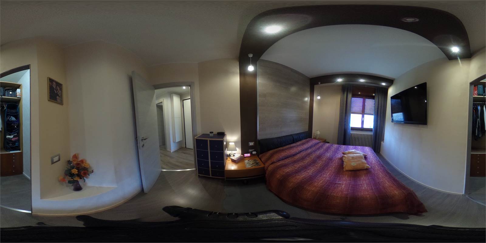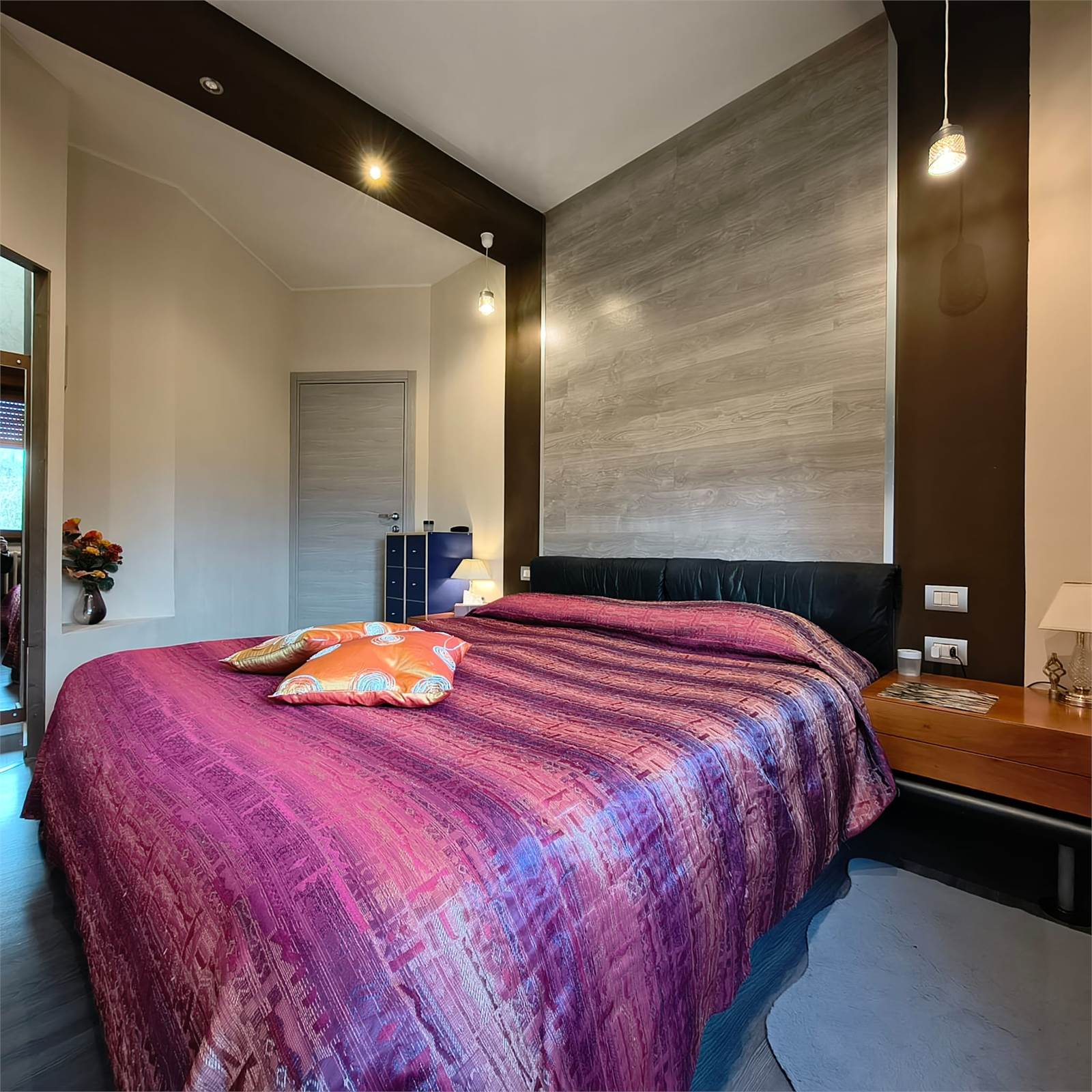La zona notte, ben separata, comprende due camere matrimoniali, di cui una con cabina armadio, e bagno finestrato con doccia completamente ristrutturato nel 2023.