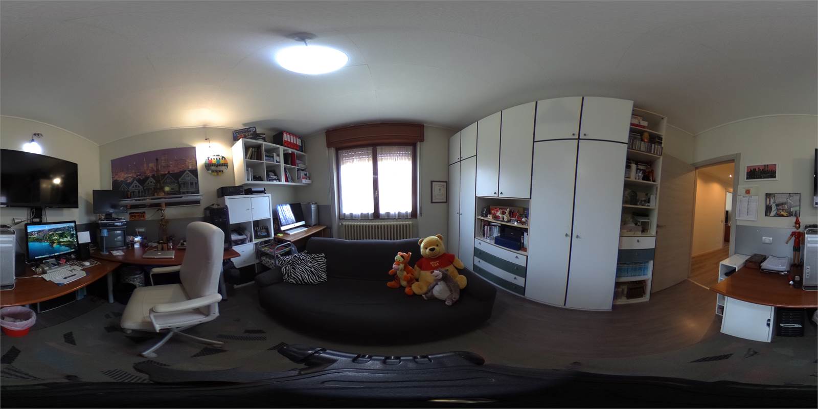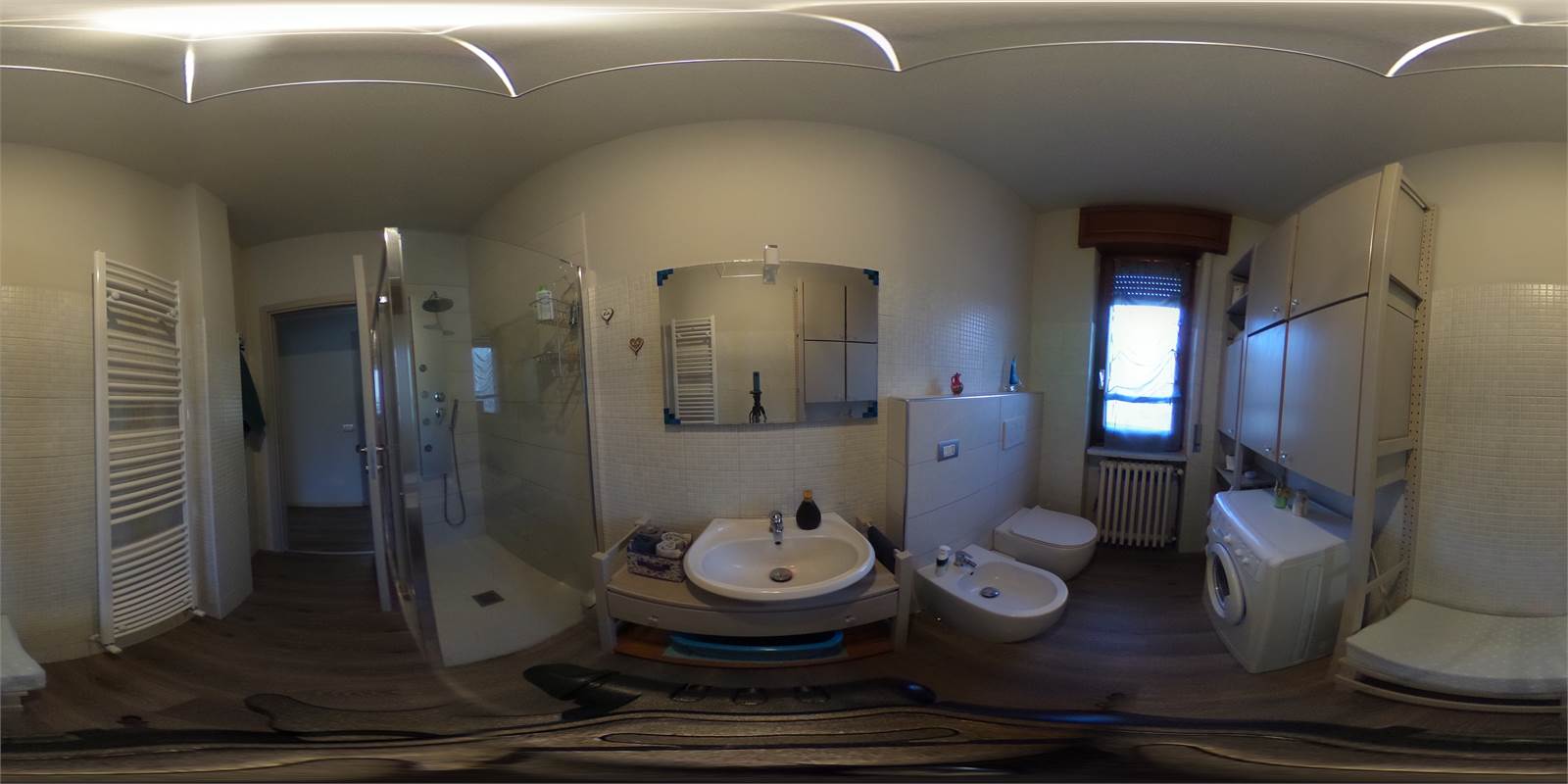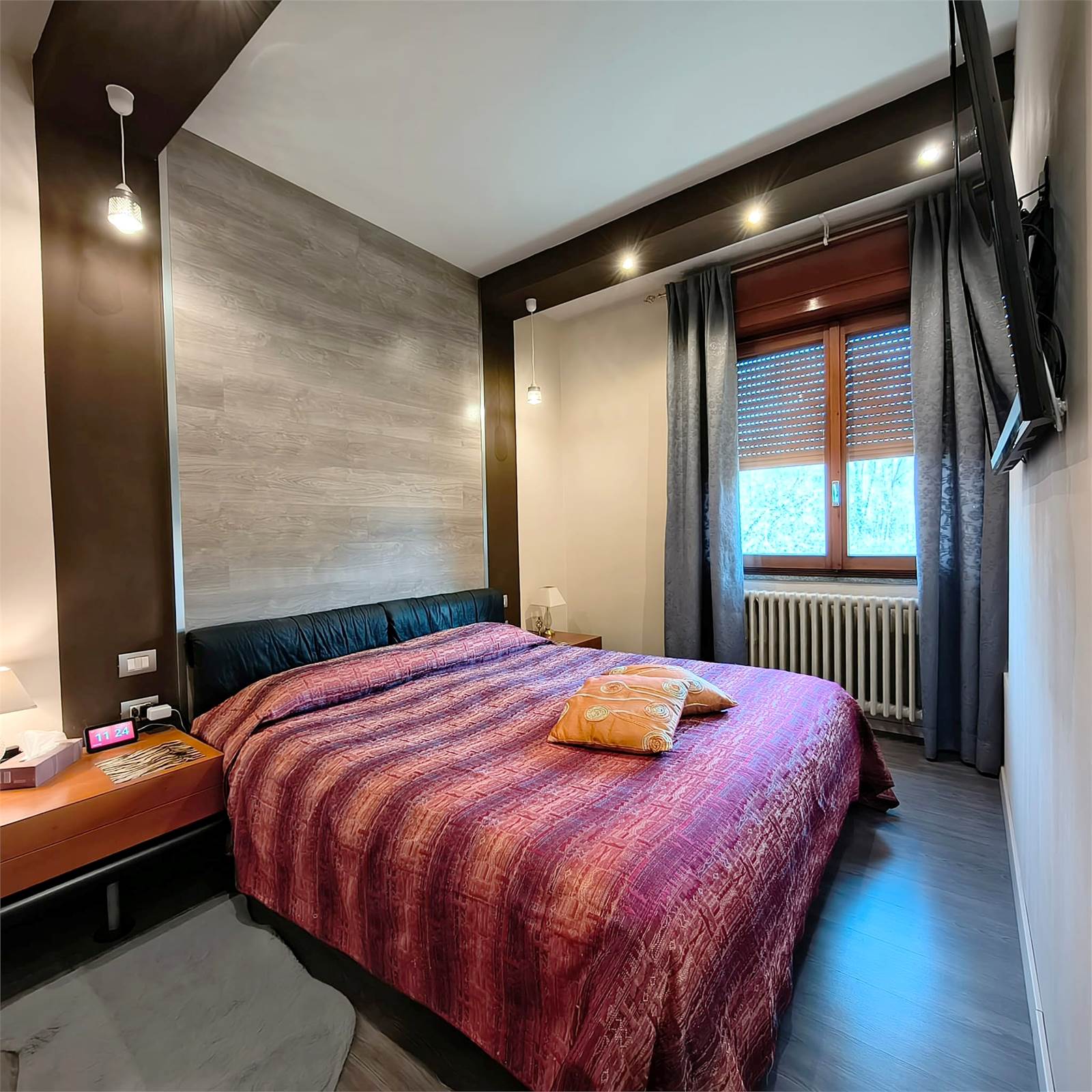 La zona notte, ben separata, comprende due camere matrimoniali, di cui una con cabina armadio, e bagno finestrato con doccia completamente ristrutturato nel 2023.